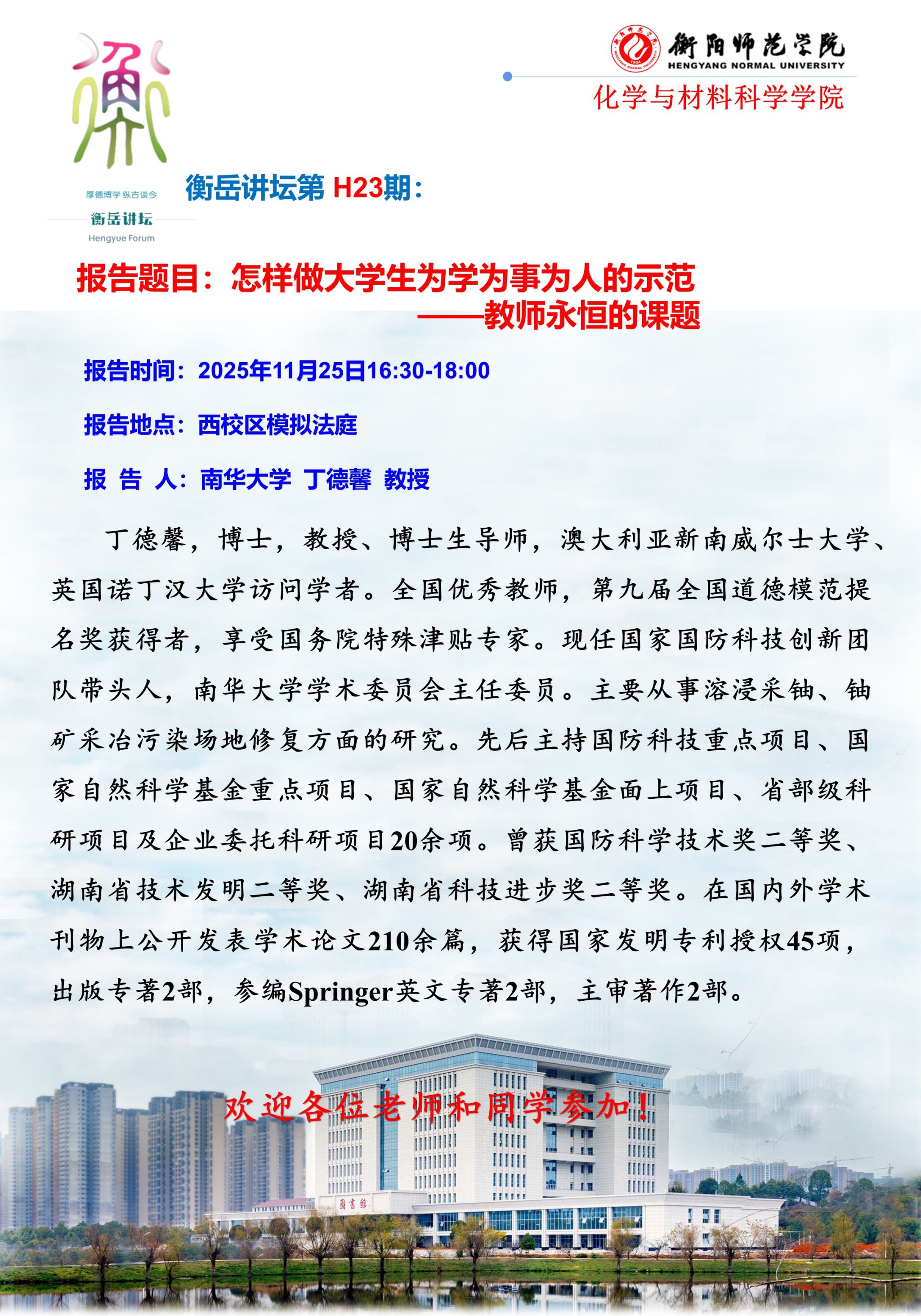 丁德馨:怎样做大学生为学为事为人的示范----教授永恒的课题
