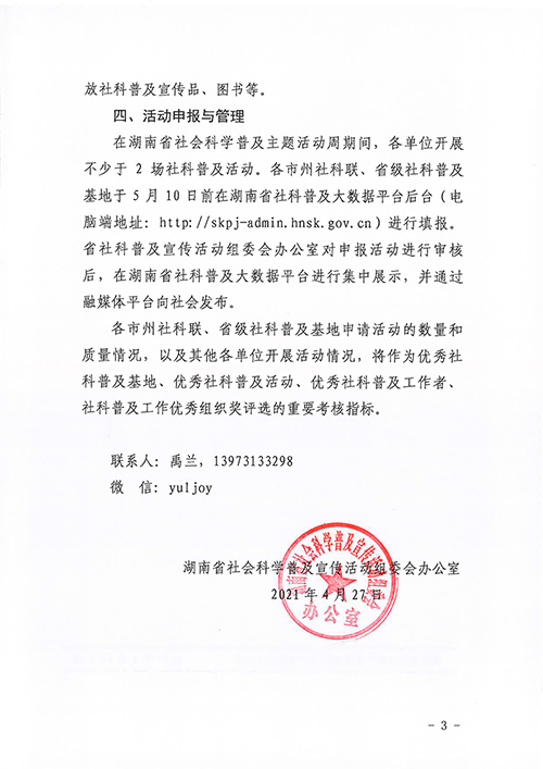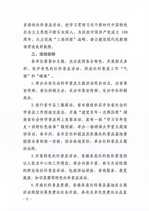 转发:湖南省社会科学普及宣传活动组委会办公室关于举办2021年湖南省社会科学普及主题活动周的通知